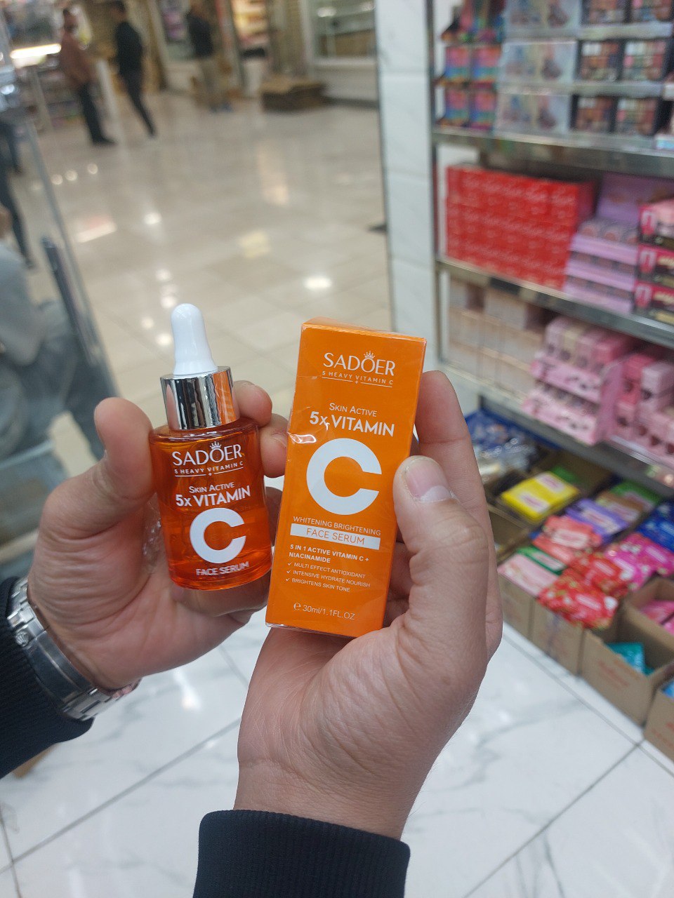 سرم سفید و شفاف کننده ویتامین سی 5 برابر سادور SADOER آبرسان قوی و عمیق پوست خنثیسازی رادیکالهای آزاد حاوی ویتامین سی 5 برابر و نیاسینامید روشنکنندگی و کاهش تیرگی پوست خواص ضد التهابی و بازسازی کننده و از بین برنده جوش و ضد جوش